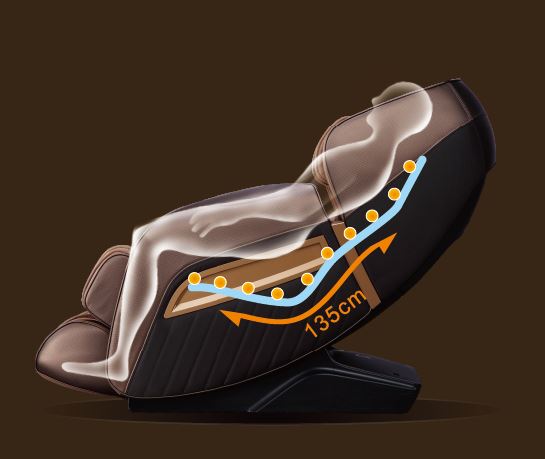 The advanced SL rail design of the TS7000 chair sets it apart from its competitors. This design aligns more closely with the natural contours of the spine and hips compared to the S or L rails found in previous models. As a result, the SL rail exerts less unnecessary pressure on bones while providing more deep tissue relief and enhanced circulatory stimulation, which is essential for a therapeutic massage. With an industry-leading rail length of 135 cm, this chair delivers comprehensive roller massage and shiatsu functionality from the base of the skull down to the top of the calves. This feature integrates seamlessly with the pressure and kneading functions for the legs, feet, arms, and hands, ensuring an exceptional massage experience.